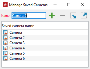 Cameras saved in this manner are named Camera, Camera 2, Camera 3, and so on.