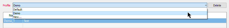 Tip: Click Delete on the far right to remove the selected profile.