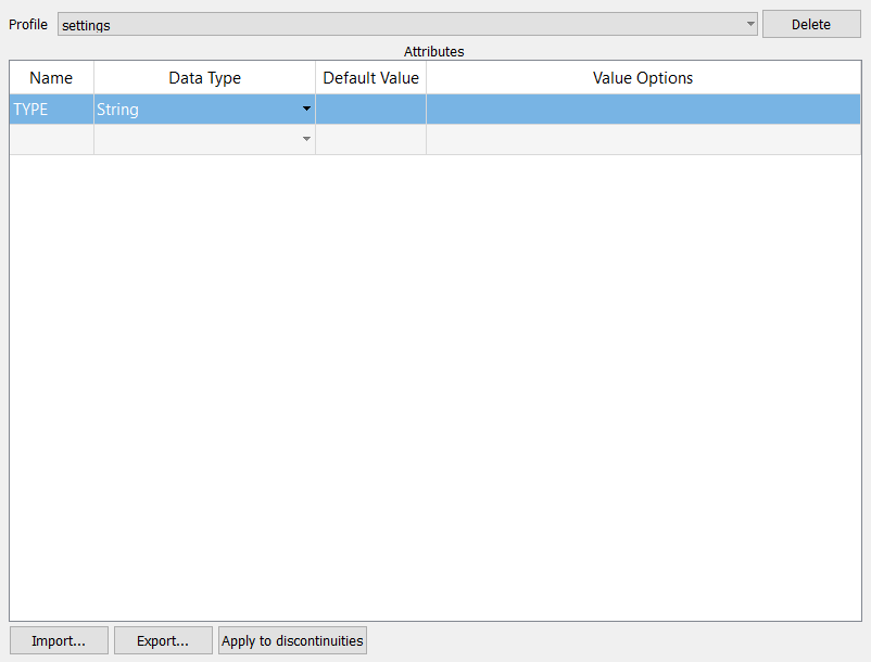 Select Default to create attributes that will be set as the default attributes for your discontinuities.