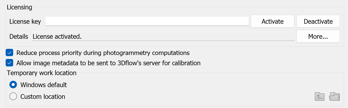 Reduce process priority during photogrammetry computations: Select to prioritise other processes over photogrammetry.