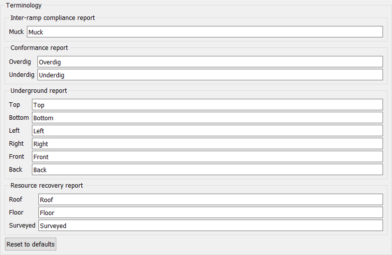 Click Reset to defaults to restore original terminologies