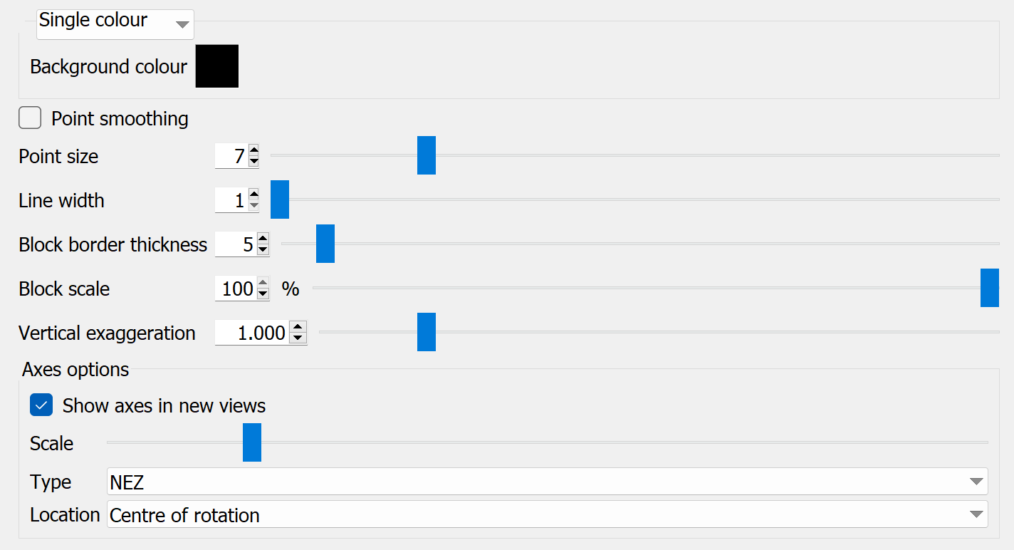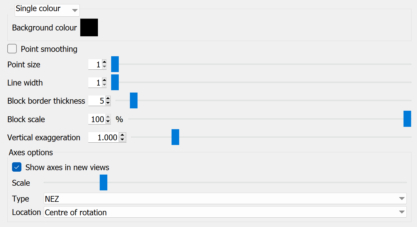Vertical exaggeration: Stretch or compress data visualisation in the Z direction. Set the exaggeration scale for optimal viewing.