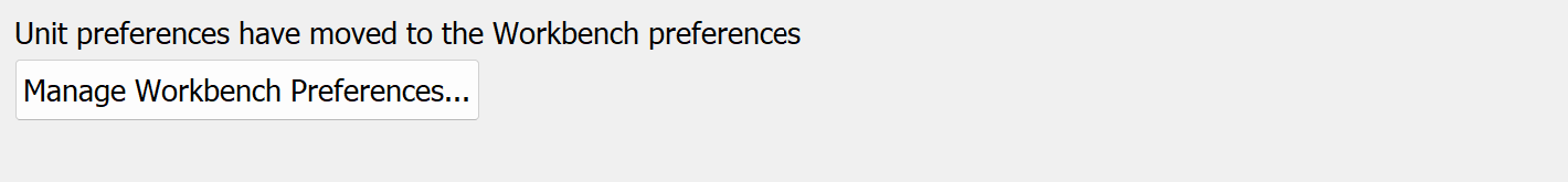 Units are configured in Workbench preferences. Click Manage Workbench Preferences... to modify units preferences. See Workbench Help > Configuring Preferences > Units for details.