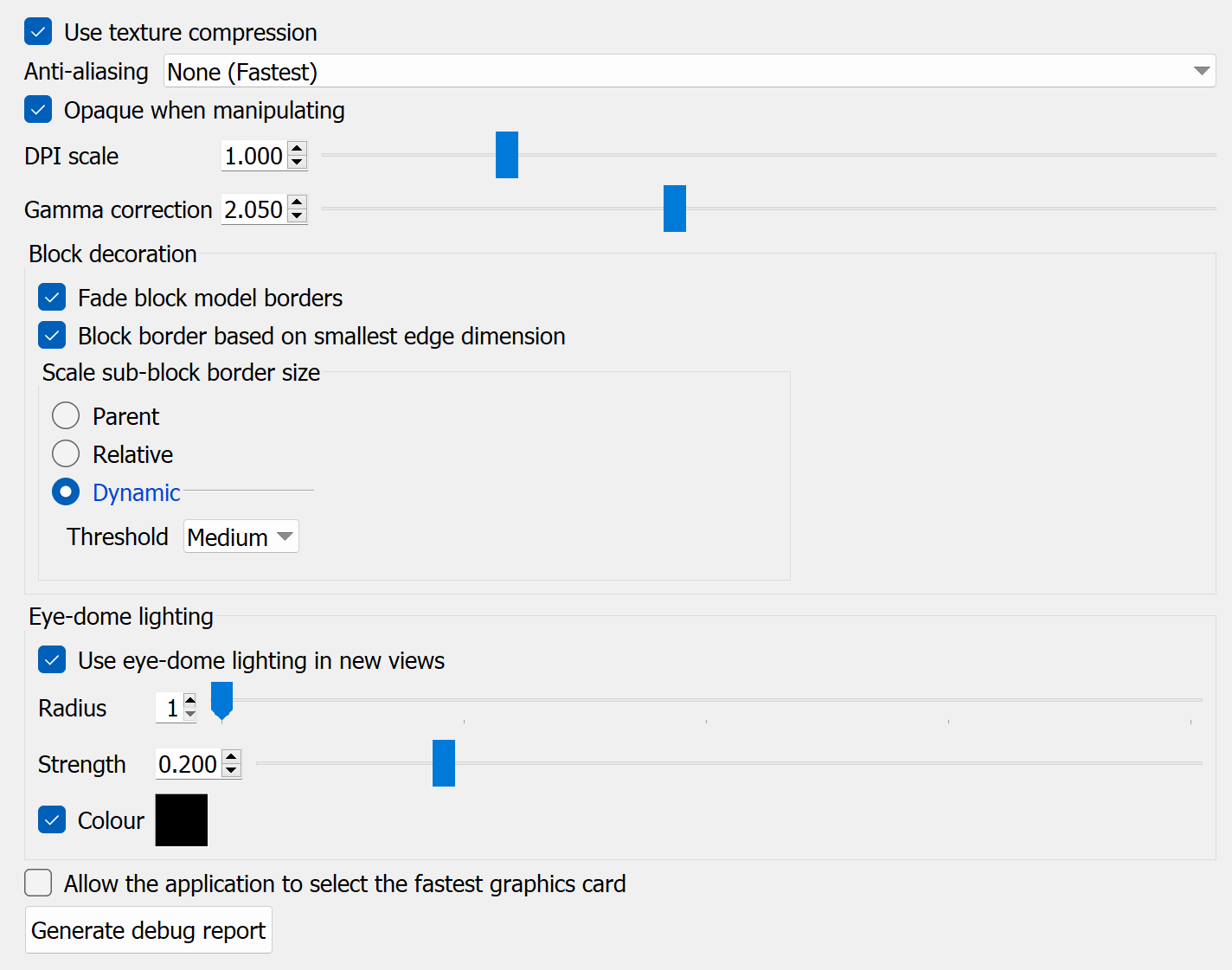 Eye-dome lighting: Adjust eye-dome lighting parameters as required.