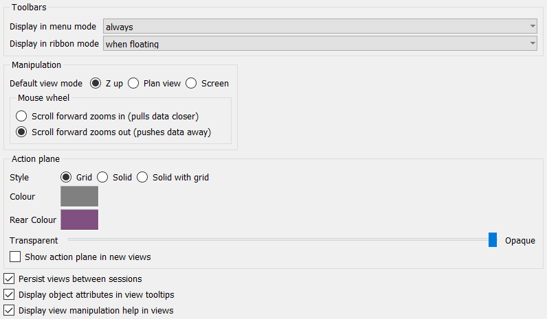 Show action plane in new views: Select to display the action plane automatically in new view windows.