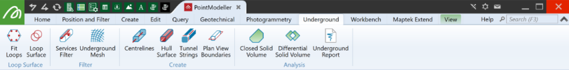The Underground tab provides tools for modelling tunnels and other cavities.