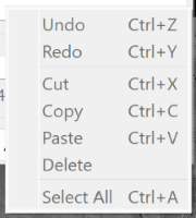Text or name field context menu. These options are available in the other context menus under Edit >. |