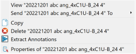 Right-clicking on an object name in the report window opens a reduced version of the object context menus above. Actual options on the menu will depend on the object type.