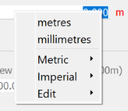 Tool panel text fields have context menus from which you can manage their contents via standard Windows commands, select specific parameters or set units.