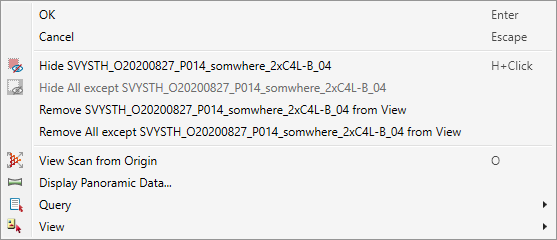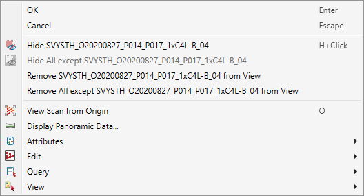 View scan from origin O Displays the data from the scanner setup location. This helps to identify line-of-sight limitations. |