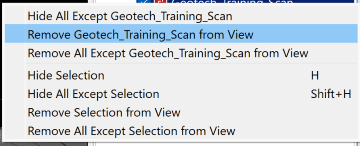 Remove <object name> from View Removes the selected objects from the active view window. Does not delete the objects from the project. |