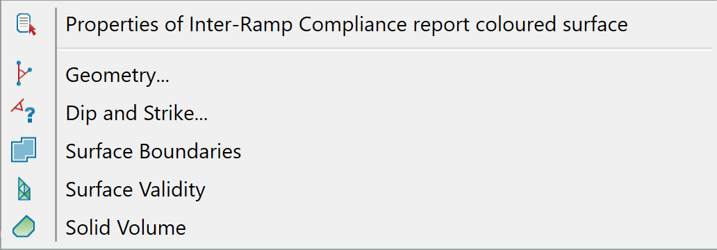 See Register Group Overview > Locating Reflectors for more information on locating reflectors. See Dip and Strike > Query for information on the Dip an Strike... option. You can find information on the other options under Menus and Tools > Query. |