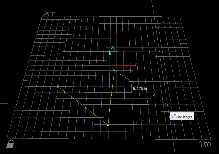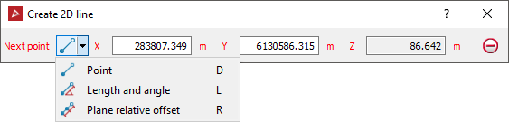 - Enter as many points as required to build your line, while selecting the desired mode of relationship between points (Point coordinates, Length and angle, Plane relative offset). Click the Right mouse button to complete the to complete the line creation process.
