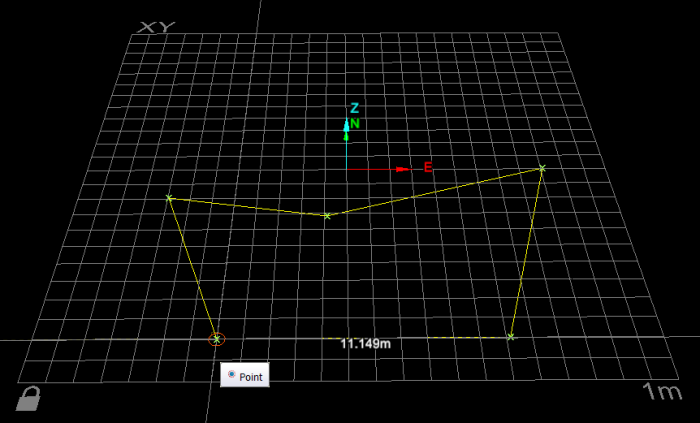 An example of polygon creation - various related dimensions can be displayed as each point is dragged into position on the action plane.