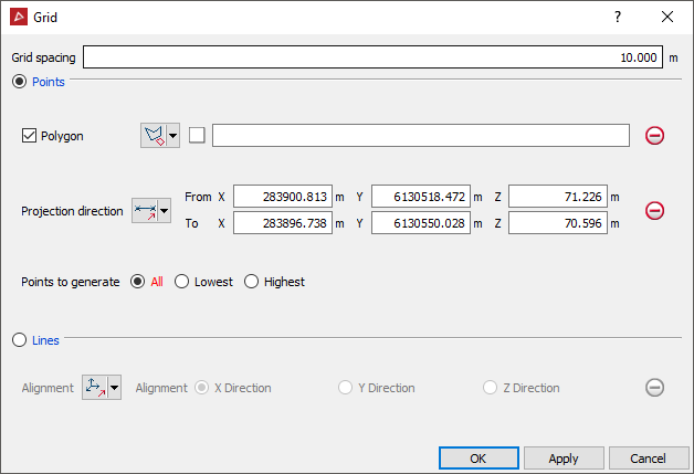 - Select whether to generate All points fitted to the surface, the Lowest points, or the Highest points.