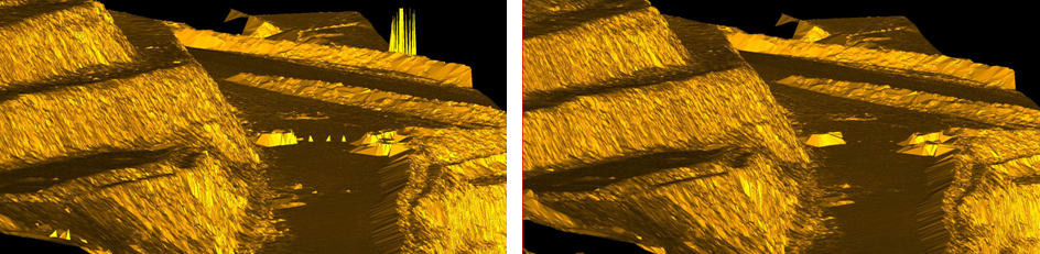 below shows a data model before and after the despike function.