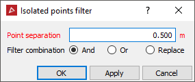 Specify a Point separation. Points without a neighbouring point within this distance will be filtered.