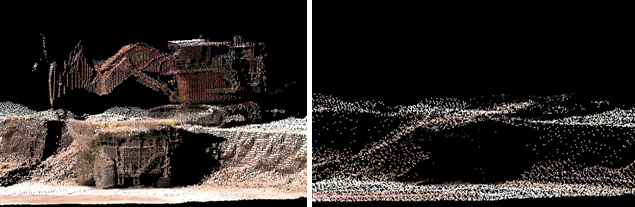 Use Topography filter to remove unwanted features from the scans. This enables equipment such as trucks and loaders to be filtered and retains only the relevant topographic surface of the mine.