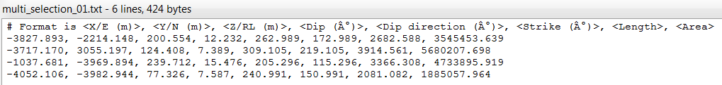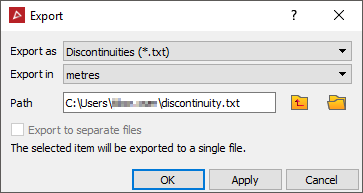 can be exported as text files. Select the discontinuities to export and