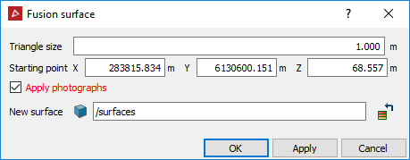 Fusion surface creates a new surface of evenly sized triangles by following the original surfaces. Where the surfaces overlap, fusion surface will follow the most detailed triangulation. Used to merge surfaces together to create a better combined result.