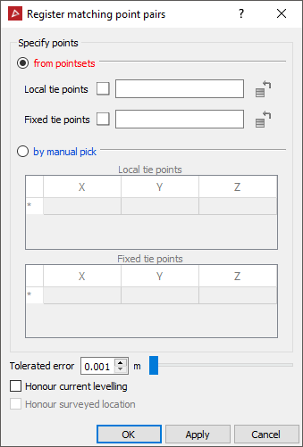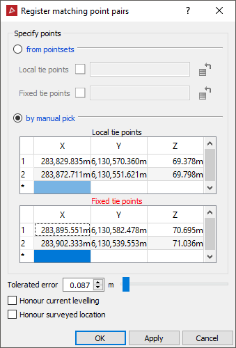 Next, choose either from pointsets method or by manual pick method to enter locations for Local tie points and Fixed tie points.