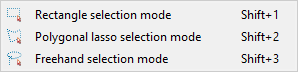 Selection mode – selects Rectangle, Polygonal lasso or Freehand selection mode, see Selection modes below for more information |
