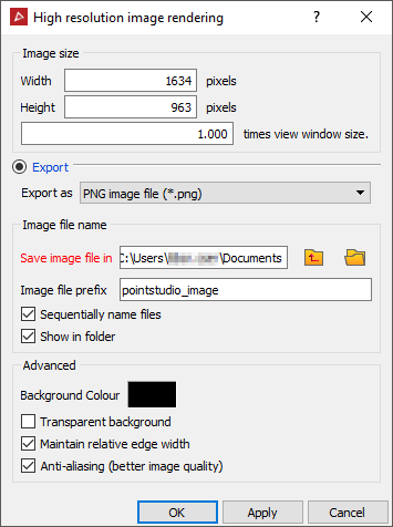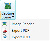 Exports objects in the View window rendered into a high resolution image or to a 3D PDF or U3D file. Objects consisting of facets, edges or 3D text may be exported.
