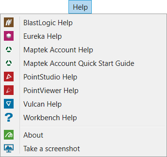 Access help files on all your installed Maptek products, Workbench and the tool to use when requesting support from Maptek staff.