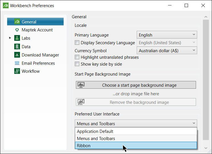 From the Preferred User Interface drop down list, select the desired layout from either the Menus and Toolbars (old) or the Ribbon style (new).