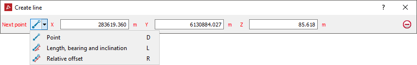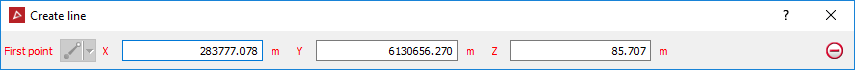 Click in the view window to select a the First point or enter values manually in the X,Y and Z input fields. Click the minus symbol to delete the entries in the input fields.
