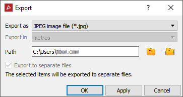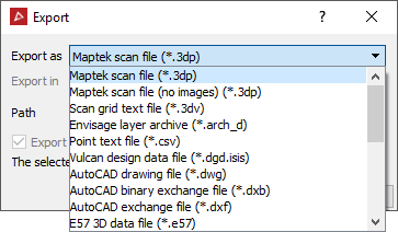 Select the Export as format. Some formats allow the unit of the exported data to be selected.