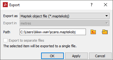 .maptekobj .maptek is the Maptek object file. The purpose of this generic file format is to allow the operator to transfer objects between other projects, or any arbitrary groups of objects excluding external referenced files. All data can be stored in one file, which makes it easier to email than Maptek projects. Otherwise, objects can be saved to individual files.