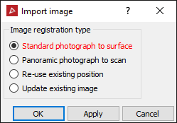 If you haven't already imported the image, you can do so by dragging it directly into an empty view window. The Import image panel will open.