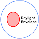 Daylight envelope Determined from slope dip and slope dip direction. The envelope contains the set of poles (normals) of planes at a shallower angle than the slope plane and which could possibly slide off if unconstrained. |