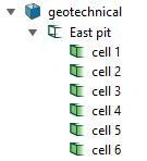 Example of all cell runs selected and placed inside the new cell object East pit |