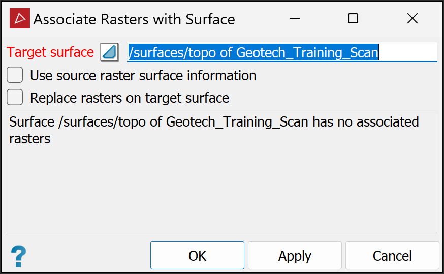 Associate Rasters to Surface. -