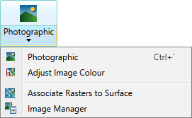 Using the remaining options in the Photographic drop-down, you can manage and modify the associated images. See Photographic > Adjust Image Colour, Associate Rasters to Surface, and Image Manager.