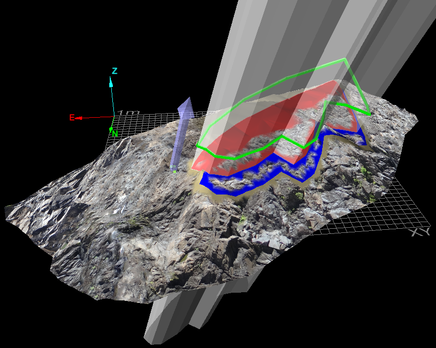 Example showing different coloured regions from different projections. |