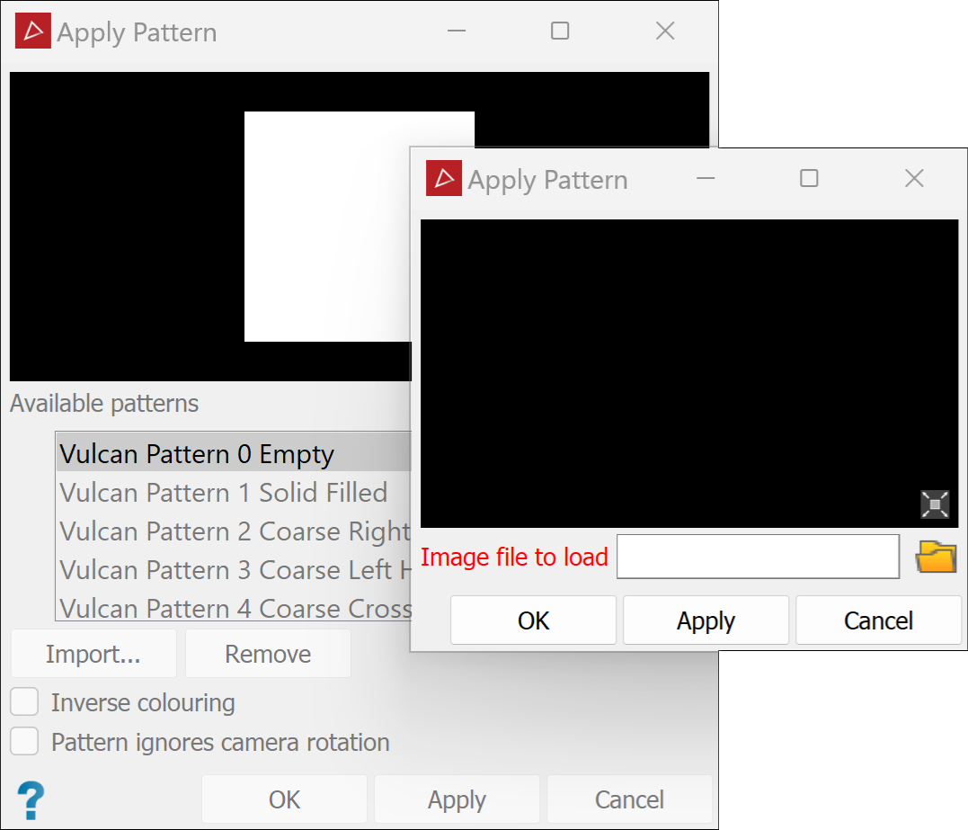 Tip: You can view available patterns with a suitable image viewer. Patterns are saved in the main program location (typically