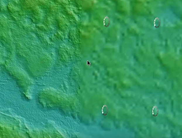 ECW image of aerial view (left). The tiles dynamically reload at high resolution when zoomed in (right). |