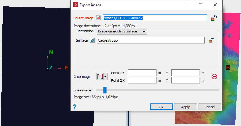 Once imported, you can drape a raster image conversion onto a surface or export it.
