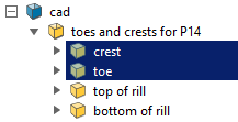 Tip: View the toes, crests and rills containers in separate windows.