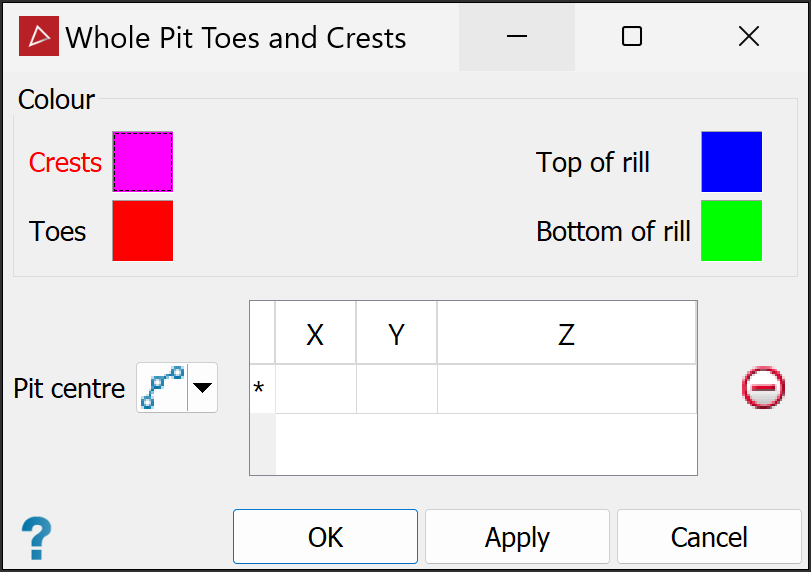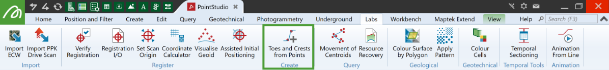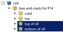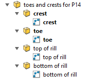 The Toes and Crests from Points tool, (Labs tab > Create group), creates four sets of lines representing the Crests, Toes, Top of rill, and Bottom of rill lines within a pit.