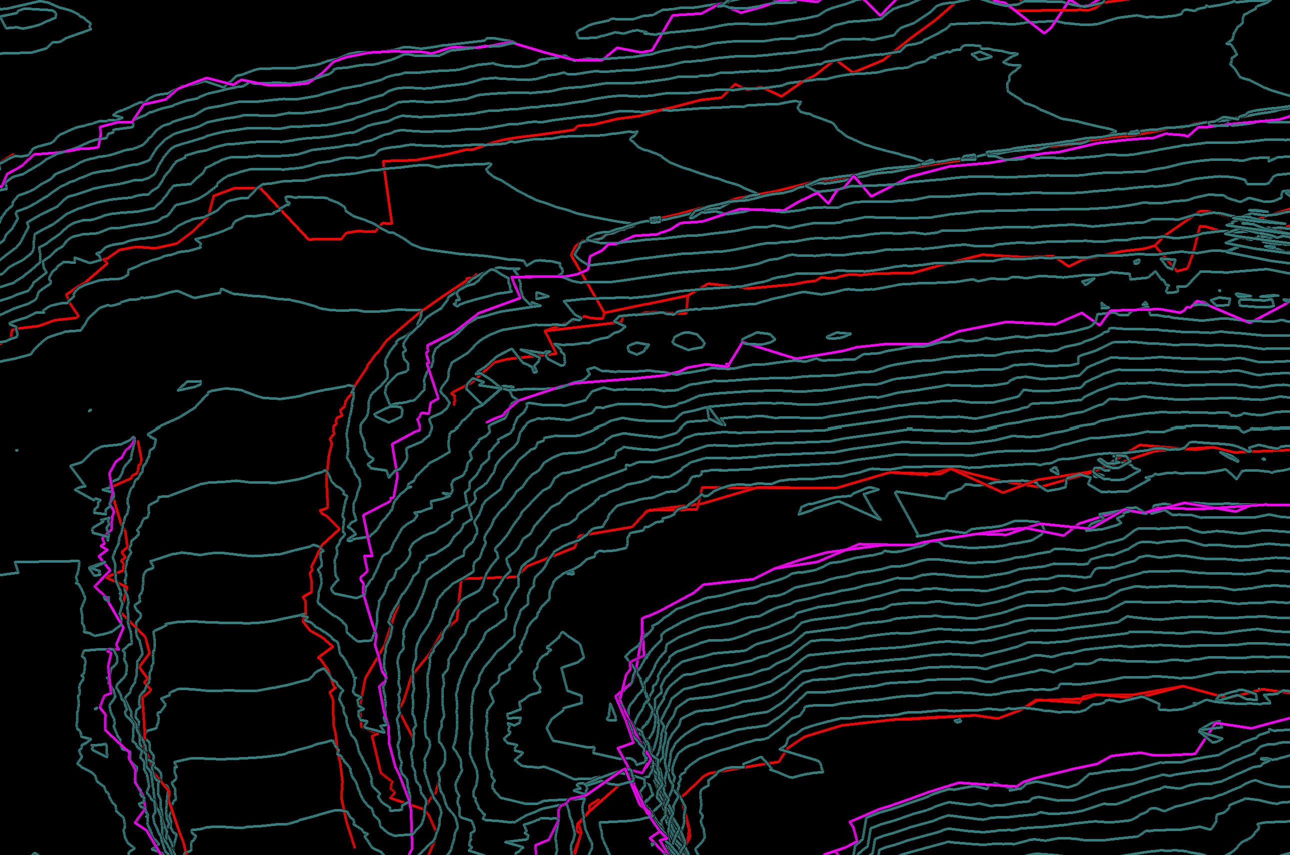 Crests and toes lines (pink and red lines), each saved in its own container. |