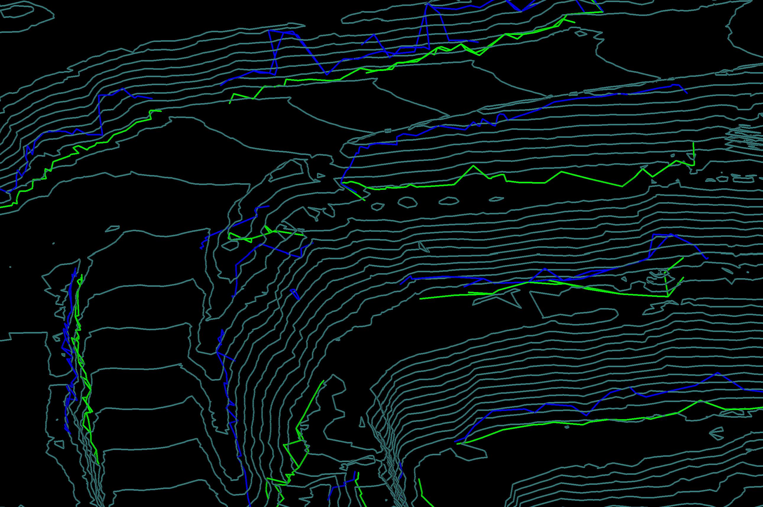 Tip: Try viewing the toe, crest, and rill lines against contour lines. Viewing against the scan or surface can obscure many line segments.