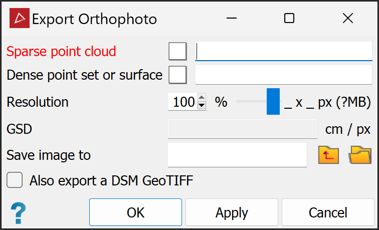 (Optional) Select Also export a DSM GeoTIFF if you need a the data in a Digital Surface Model GeoTIFF file.