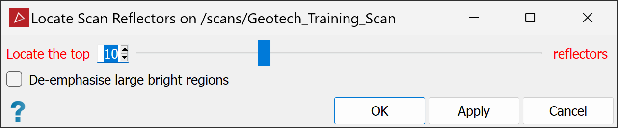 Note: As locating reflectors uses the topology of the scan, make sure the scan is not filtered for best results.