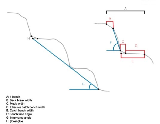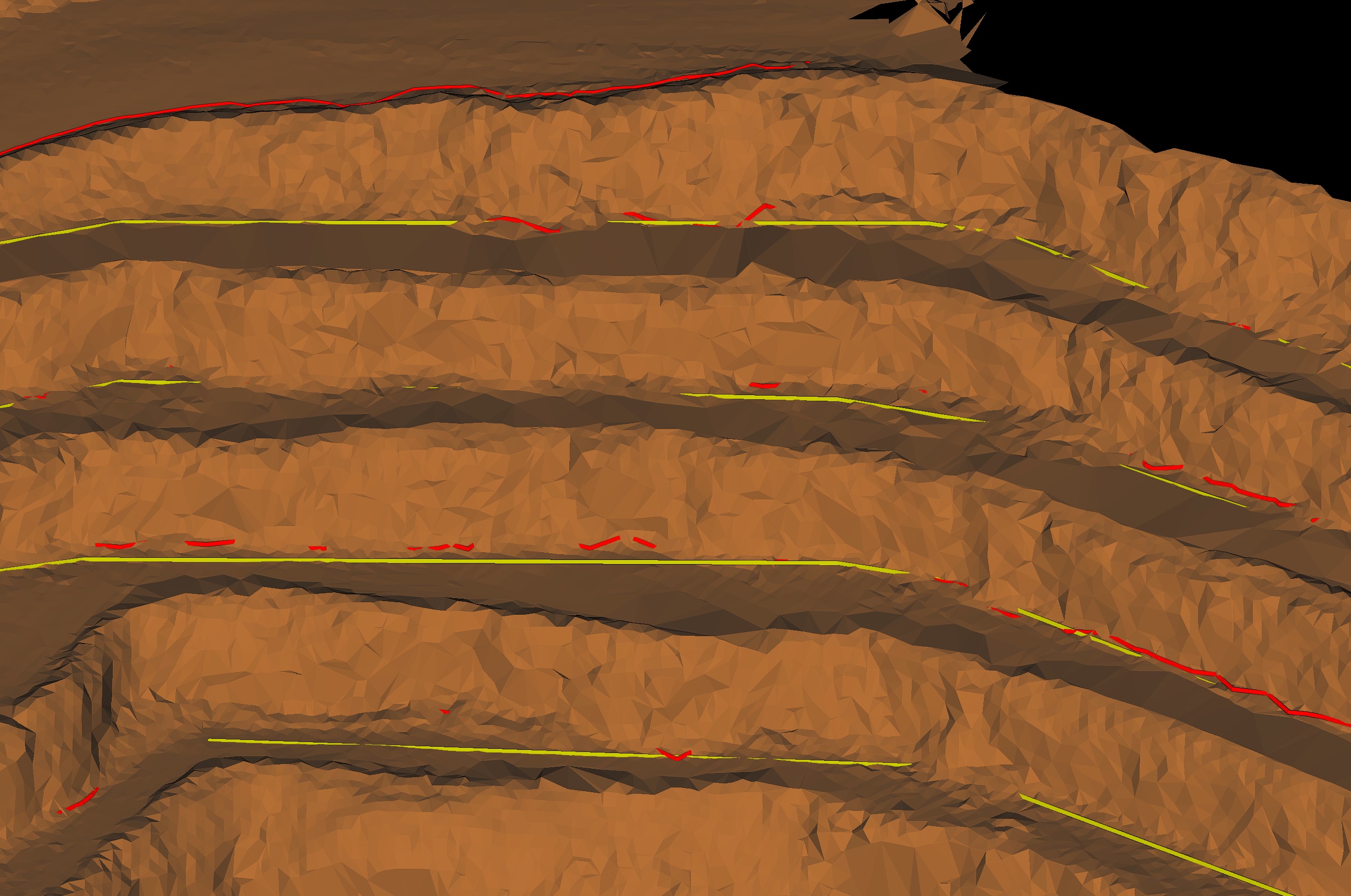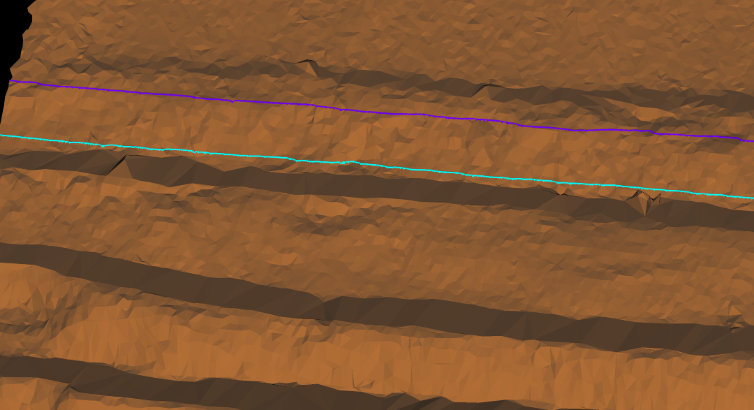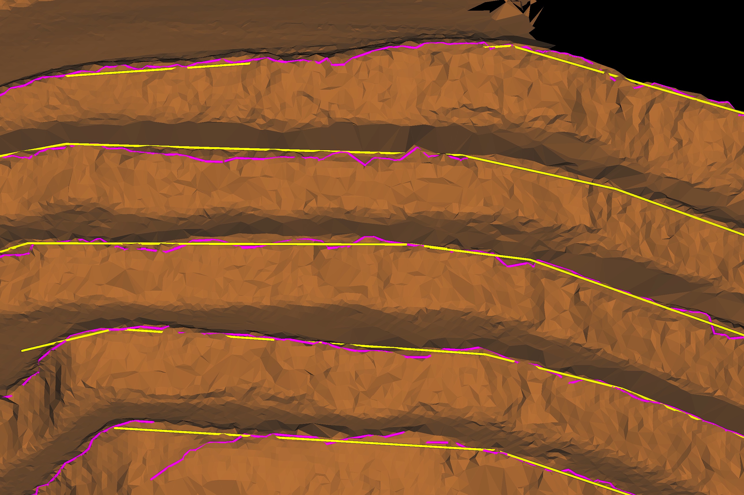• Muck top and bottom lines. If an actual toe line is obscured by a muck pile, you can specify the muck top and bottom lines.