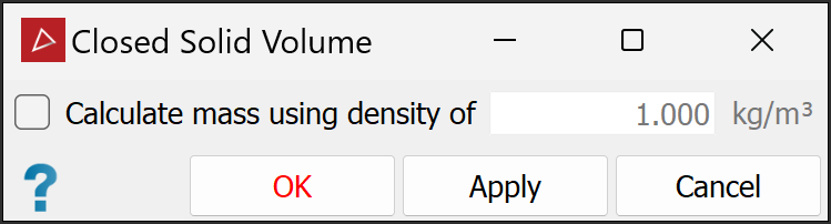 The Closed Solid Volume tool (Alt+B) measures the volume of a closed solid surface.