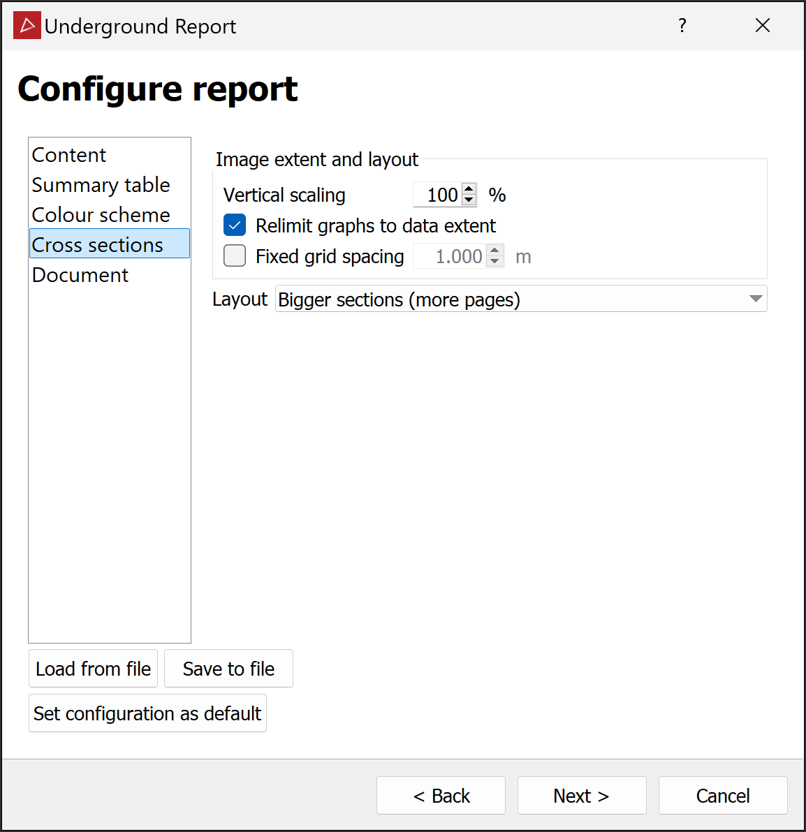 Examine the layouts and adjust them as necessary. Specify the distance between automatically generated cross-sections and add any custom cross sections, as required.